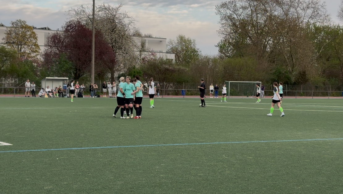 Als um kurz nach 19 Uhr schließlich der Anpfiff ertönte, entwickelte sich von Beginn an eine spannende Partie mit guten Chancen auf beiden Seiten. Der SV Niederursel konnte in der 11. Minute durch einen Abstauber in Führung gehen, bevor Vivi Heise Mitte der 1. Hälfte den Ausgleich für uns erzielte.