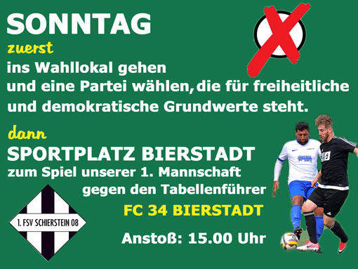 Zweitens: Die Wahllokale haben von 8.00 bis 18.00 Uhr geöffnet! Macht unbedingt von eurem Stimmrecht Gebrauch! Geht wählen! Gerade wir, die Sportvereine, brauchen zuverlässige Partner in der Politik. In Wiesbaden und Berlin!