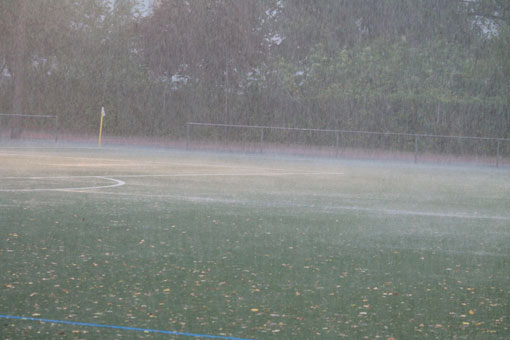 Unmittelbar nach dem Anpfiff der zweiten Halbzeit besorgte Niklas Bücherl das 4:1 und das 5:1. Ein starker Auftritt von Niklas! Nach dem 5:1 hatte dann ein Unwetter seinen großen Auftritt am Zehntenhof! Blitz, Donner und ein Wolkenbruch schickten den Schiedsrichter und die Spieler in die Kabinen. Dem Unwetter folgten das 5:2 von Erkan Demiric sowie zwei weitere von Daniel Künzl erzielte Nullachtertreffer!