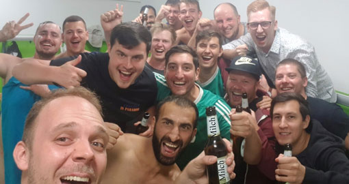 Doch: Das Spiel beruhigte sich und die Gastgeber setzen der Bereitschaft, Gastgeschenke zu verteilen ein Ende! Daniel Künzl war in der 64. Minute erneut zur Stelle und netzte zur 4:3-Führung ein! Entspannung machte sich bei den rund 120 Fans breit. Und als Sascha Niesen in der 79. Spielminute das 5:3 erzielte, schien der Sieg jetzt endgültig im Sack zu sein!