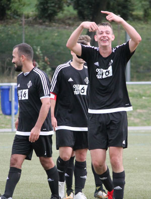 Erst in der 90. Spielminute konnten die Jungs von Coach Athanasios Politis den Sack endgültig zumachen. Und wieder war Lars Petersen (Foto links) der Goalgetter! Mit einem satten Schuss aus 20 Metern schmetterte er die Kugel unhaltbar in die Maschen der Gastgeber! Lars Petersen funkelten die Augen! Tolles Spiel von ihm und seinen Mitspielern! Leidenschaft pur – so soll es sein.
