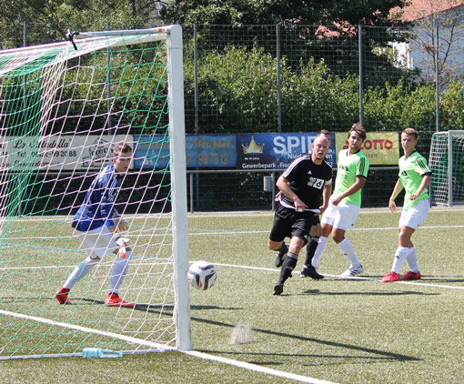 Nachdem Daniel Künzl in der Anfangsphase zweimal knapp gescheitert war (Foto oben), machte Inan Güder in der 20. Minute das 0:1. Zum Glück ließ der SV Niedernhausen in der 30. und 33. Minute zwei gute Chancen liegen und so wurden beim Spielstand von 0:1 die Seiten gewechselt.