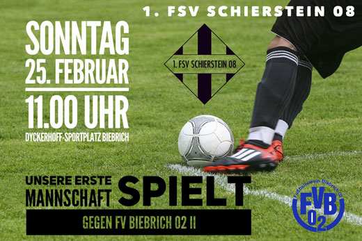 Die Zeit der winterlichen Vorbereitung ist vorbei und das Spiel bei der Zweiten Mannschaft des Verbandsligisten Biebrich 02 wird unseren Jungs gleich alles abverlangen. Die Gastgeber haben vergangenen Sonntag bereits "Pflichtspiel-Luft" geschnuppert und die Sportvereinigung Amöneburg mit 5:3 nach Hause geschickt.