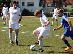In der Tat, der Ball lief optimal gegen ein starkes Gastgeberteam, das in der 9. Spielminute mit 1:0 in Führung ging. Der Tiefschlag wurde schnell weggesteckt und Robert Niesen glich in der 21. Minute aus. Verdient, der zweite Nullachter-Treffer von Daniel Künzl in der 32. Minute. Fabio Bandel, der 13er der Gastgeber war sieben Minuten später zur Stelle und netzte zum 2:2 ein. Vier Tore in den ersten 39 Minuten waren für Nico Götze noch nicht genug! Er brachte seine Elf mit einem blitzsauberen Tor mit 3:2 in Führung.