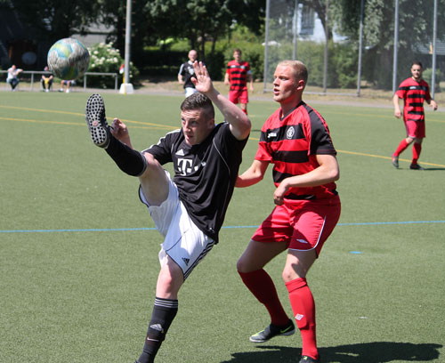 2015-06-04 (HG) Relegationsspiele haben schon ihren besonderen Reiz. Das spürte man auch heute auf der Sportanlage an der Kaiserbrücke. Nicht nur die Protagonisten standen während der Partie unter Spannung, sondern auch die Fans hinter der Außenlinie. Doch trotz dieses "Hochdrucks" ging das erste Relegationsspiel um den Aufstieg beziehungsweise Verbleib in der Kreisoberliga total fair über die Bühne! Hierfür ein Kompliment an beide Teams sowie an die etwa 400 Zuschauer!