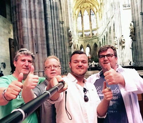 2015-06-06 (HG) Jetzt muss es mit dem Aufstieg doch klappen: Thomas Jindra, Ralf Deusser, Sebastian und Stephan Dittel besuchten heute die größte Kirche Prags, den Veitsdom der Prager Burg, und ließen für das morgige Relegationsspiel "zugunsten" der Nullachter eine Kerze brennen! Vielen Dank und noch viel Spaß in der "Goldenen Stadt" an der Moldau.