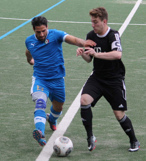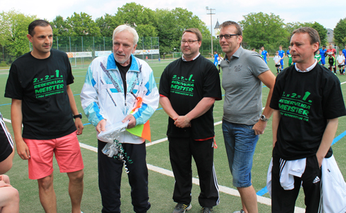 2014-06-01 (HG) Mit den Spielen gegen die SG Italia Rhein-Main Wiesbaden ist für unsere Erste und Zweite Mannschaft die Saison 2013/2014 zu Ende gegangen. In beiden Spielen zeigten sich unsere Mannen in bester Spiellaune! Die Zweite Mannschaft ließ sich auch in der letzten Partie nicht über den Tisch ziehen und fügten ihren 19 Siegen einen weiteren hinzu. Mit 9:1 zogen sie dem „Italienern“ das Fell über die Ohren. Am Torsegen beteiligt waren mit jeweils drei Treffern Daniel Künzl und Maximilian Glass sowie Marcus Radu, Sebastian Pawlik und Hajrettin Aktürk. Nach dem Abpfiff war die offizielle Ehrung durch den Klassenleiter Ingo Jungk angesagt, der die Meisterschaftsurkunde überreichte.