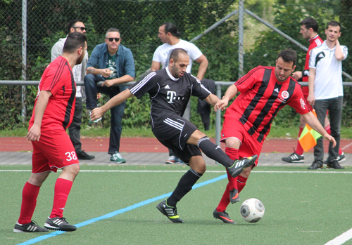 Von Beginn an setzte man diese unter Druck. Folgerichtig fiel dann der Ausgleich zum 2:2 in der 50 min., als wiederum Adjmal Bariz völlig freistehend, eine von Martin Papaja mit dem Kopf verlängerte Flanke von Ricardo Guarino, einnetzen konnte. Danach stellten sich einige Nickligkeiten zwischen beiden Teams ein bei der der Schiri nicht immer eine gute Figur abgab.