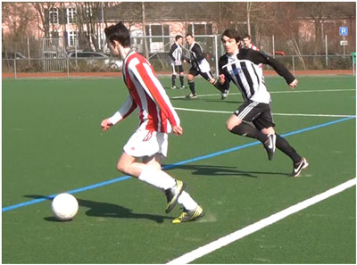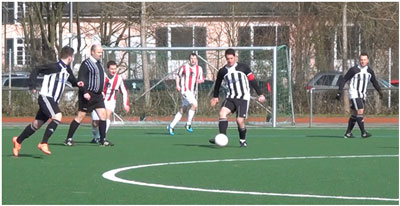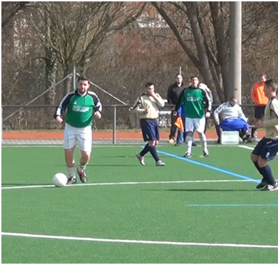 2013-03-24 (HG) Bei eisigem Ostwind und gefühlten Minusgraden „verfolgten“ die meisten Zuschauer die Begegnung gegen die Spielvereinigung Sonnenberg im Vereinslokal oder in der Nähe des Wurstgrills. Dabei konnte man sich an dem Spiel unserer Jungs durchaus erwärmen. Der Ball lief ordentlich durch die eigenen Reihen und mit zwei blitzsauberen Toren von Riccardo Guarino in der 20. und Martin Papaja in der 36. Minute wurde auch ein verdienter 2:0-Pausenvorsprung erzielt.