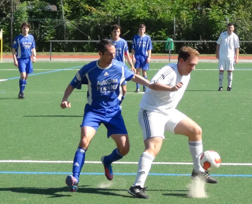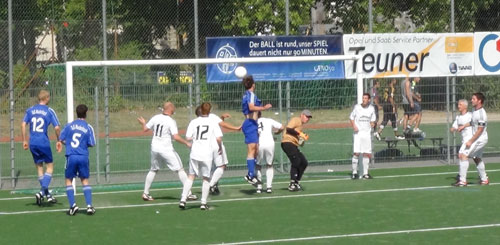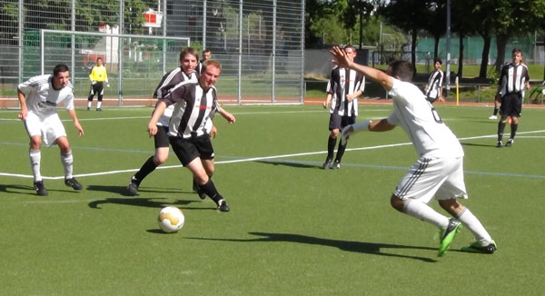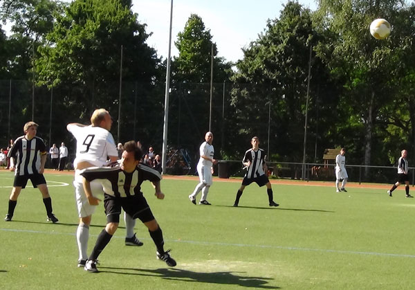 Auch im Spiel der Reserveteams starteten wir mit einem frühen Tor. Es war ein Gastgeschenk - sprich Eigentor - in der dritten Spielminute! Grundstock für einen deutlichen und „schnellen“ Sieg? Keineswegs! Wenn wir uns nach Spielschluss über einen 7:3-Sieg freuen konnten, war es zumindest bis zur 60. Minute „Schwerstarbeit“! Zu diesem Zeitpunkt waren die Gastgeber noch gut in Schuss und es stand 3:3. Sodann brachen die Schwarz-Weißen ein und überließen uns das Feld! Marcus Radu schrieb sich mit gleich dreiTreffern in die heutige Torschützenliste ein, Hajrettin Aktürk, Eric Eggert und Ralf Lang steuerten jeweils ein Tor zum Sieg bei. Ralf Lang wird von seinem technisch perfekt erzielten Treffer noch in Jahren erzählen!